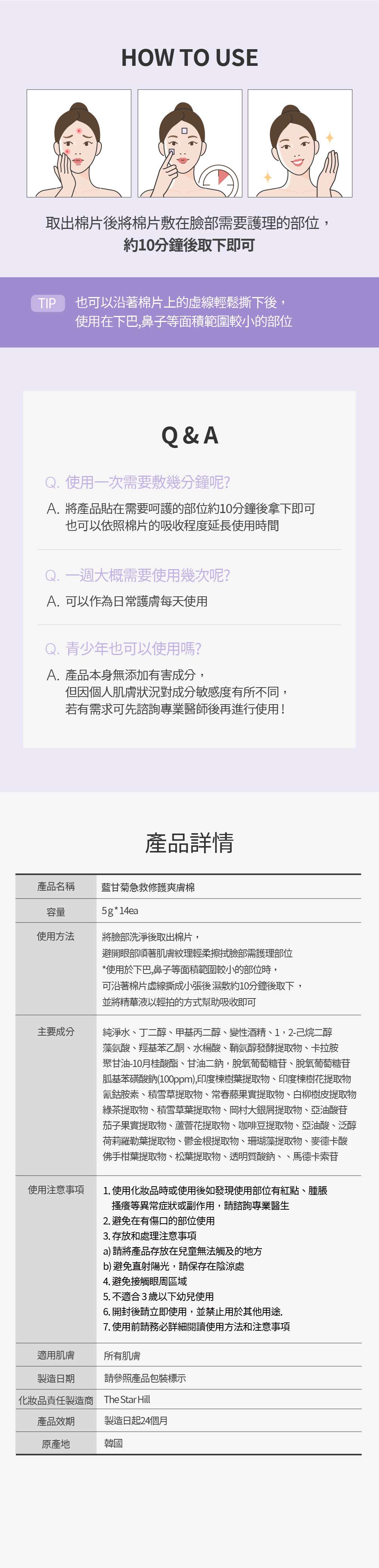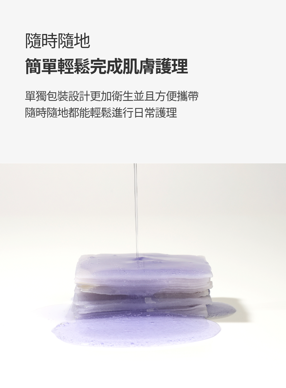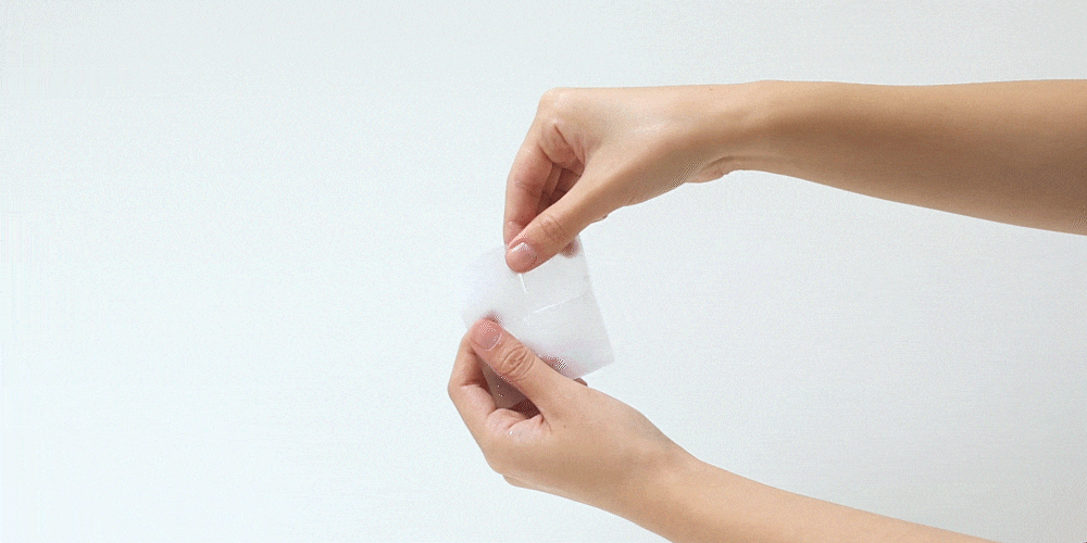 *TIP 爽膚棉可依照虛線撕成小張後 濕敷在臉部需集中護理部位