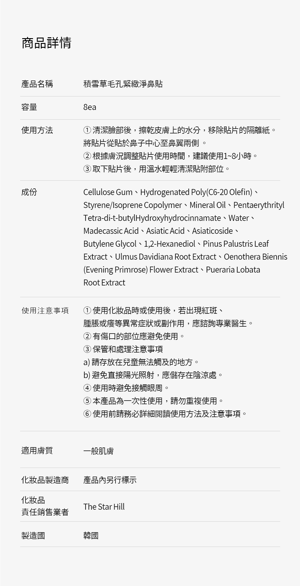 • 含積雪草萃取物及毛孔緊緻專利成分